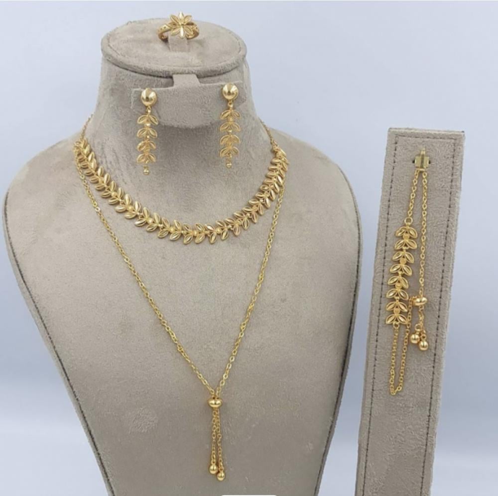 طقم مميز من متجر عصري بديل الذهب لونه ثابت لا يتغير مهما تعرض للمياه والاستخدام العادي اليومي